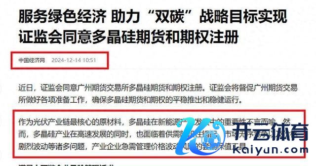 期货市集的推出时点与行业周期的相干性扯后腿淡薄。在行业周期高点或下行期推出期货,雷同难以扭转市集预期欧洲杯体育,以致可能加重市集的悲不雅姿色。相干词,在特定危急或战略利好的催化下,期货市集大概速即反应并鼓吹行业周期的逆转。多晶硅期货的推出正处于行业周期的低点,跟着战略利好的冉冉落地,全行业扭亏为盈的但愿正在冉冉清楚。这一格局再次教导咱们,期货市集的推出时点与行业周期的主持至关紧要,惟有精确主持时机,能力实在发扬期货用具的积极作用。$特变电工(SH600089)$ $通威股份(SH600438)$ $隆基绿能(SH601012)$